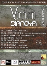 W Częstochowie zagości nadzieja polskiego progrocka - zespół Votum. Kapela wraz z zespołem Dianoya rozpoczyna tym samym polską trasę koncertową „The Rich & Famous Tour 2013” promującą najnowsze wydawnictwa obu zespołów - „Harvest Moon” oraz „Lidocaine”.