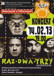 Jeden z najważniejszych zespołów polskiej sceny muzycznej, świętujący niedawno 20-lecie działalności, zaprezentuje swoje największe przeboje w niecodziennych aranżacjach.Grupa RAZ, DWA, TRZY wystąpi w specjalnym programie z towarzyszeniem Orkiestry Symfonicznej Filharmonii Częstochowskiej pod batutą Huberta Kowalskiego.